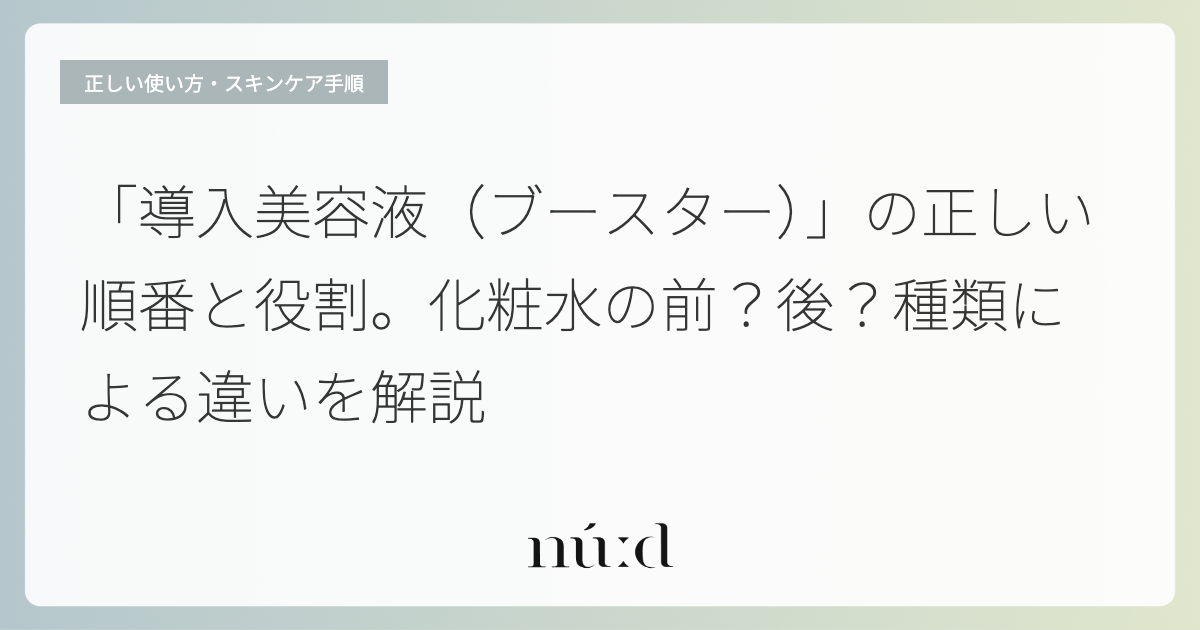 この記事では、導入美容液の本来の役割と、基本的な使い方、そして種類による順番の違いについて解説します。