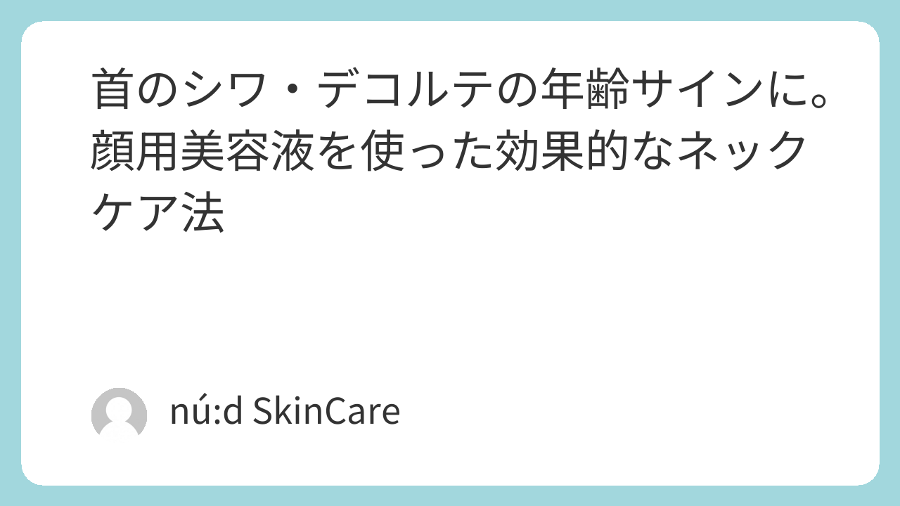 この記事では、首やデコルテが老けて見える原因と、顔用美容液を使った効果的なネックケア方法について解説します。