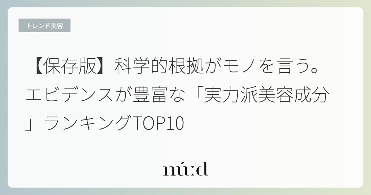 この記事では、数ある美容成分の中から、皮膚科学的に見て特にエビデンスが蓄積されている「実力派成分」TOP10をご紹介します。