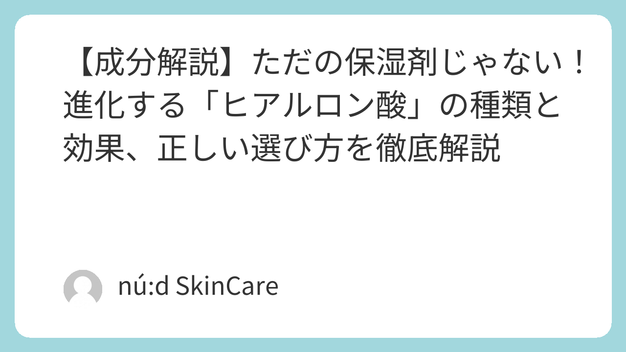 【成分解説】ただの保湿剤じゃない!進化する「ヒアルロン酸」の種類と効果、正しい選び方を徹底解説