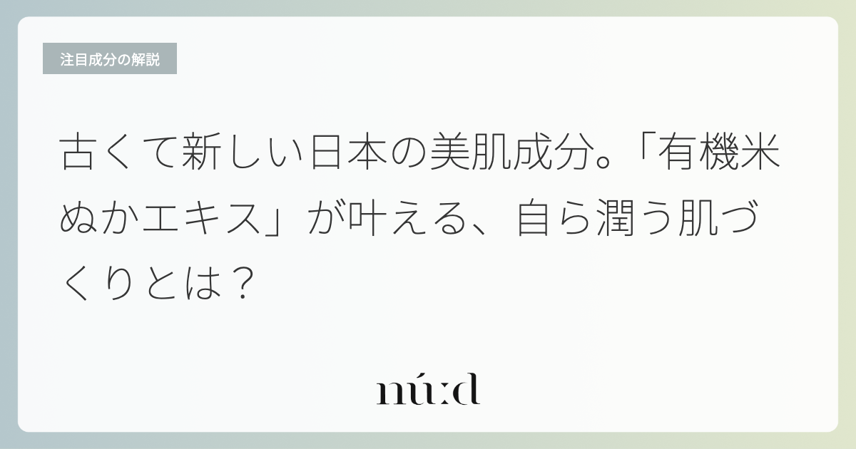 今回ご紹介する「有機米ぬかエキス」は、一般的な米ぬかエキスとは一線を画す、2つの大きな特徴があります。
