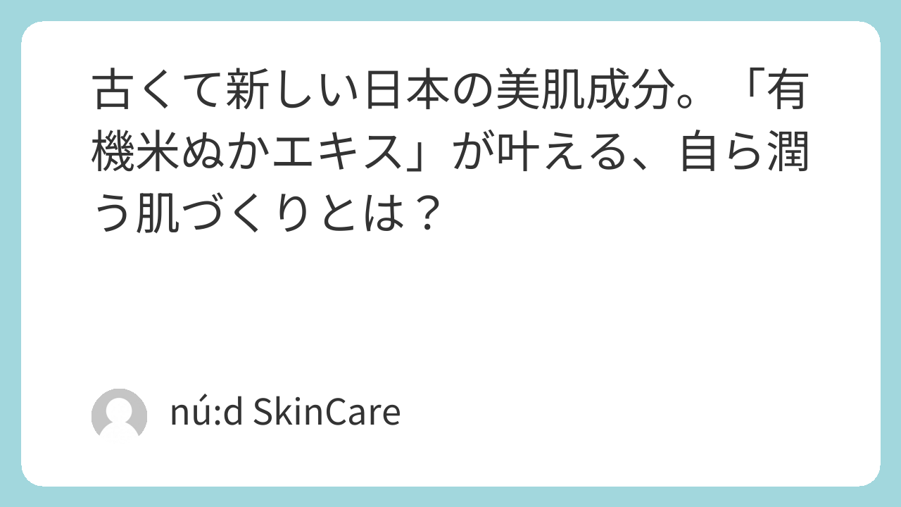 古くて新しい日本の美肌成分。「有機米ぬかエキス」が叶える、自ら潤う肌づくりとは?