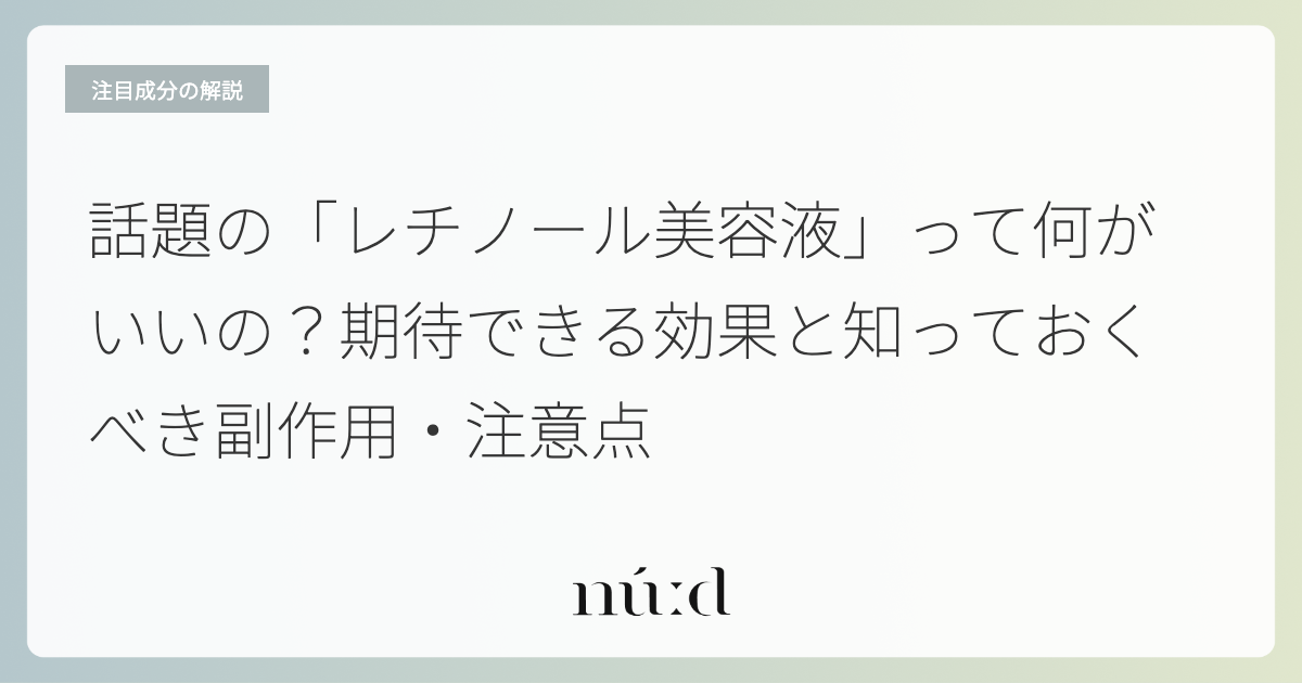 SNSや美容雑誌で「肌が変わる!」「手放せない!」と話題沸騰の成分「レチノール」。シワや毛穴ケアに効果的らしいと聞いて興味はあるけれど、「副作用が怖い」「使い方が難しそう」と二の足を踏んでいる方も多いのではないでしょうか。