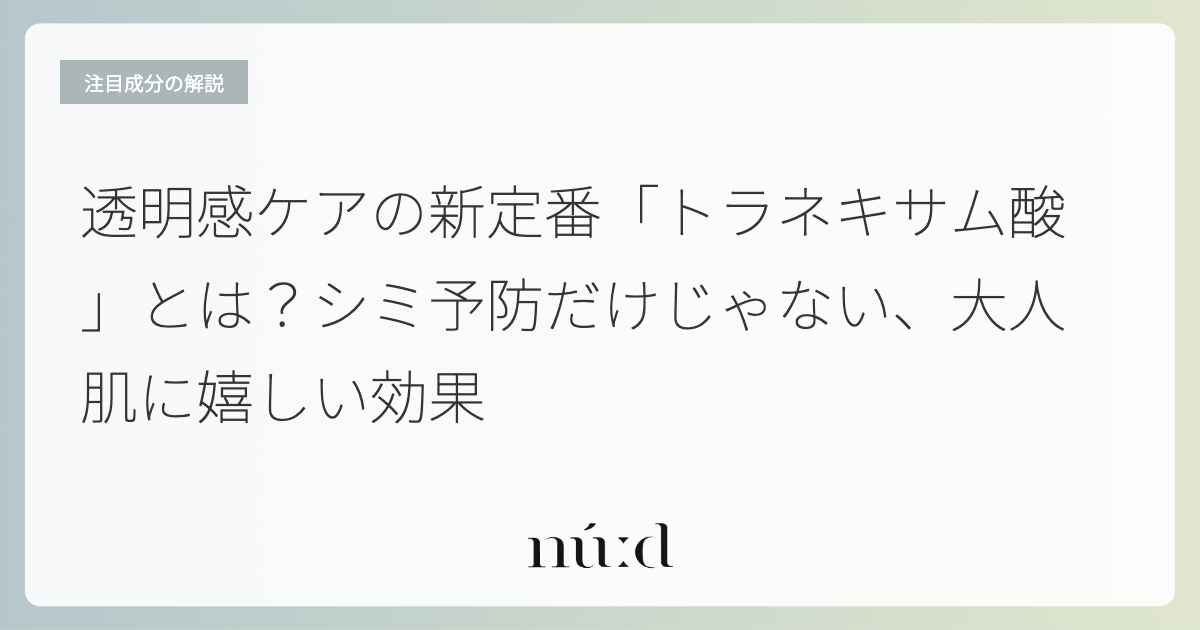 トラネキサム酸は、シミの発生源をブロックする「美白効果」と、肌の赤みや荒れを鎮める「抗炎症効果」を併せ持つ、大人肌の強い味方です。
