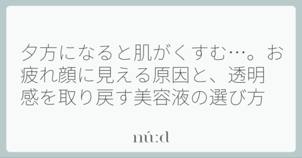 夕方になると肌がくすむ…。お疲れ顔に見える原因と、透明感を取り戻す美容液の選び方